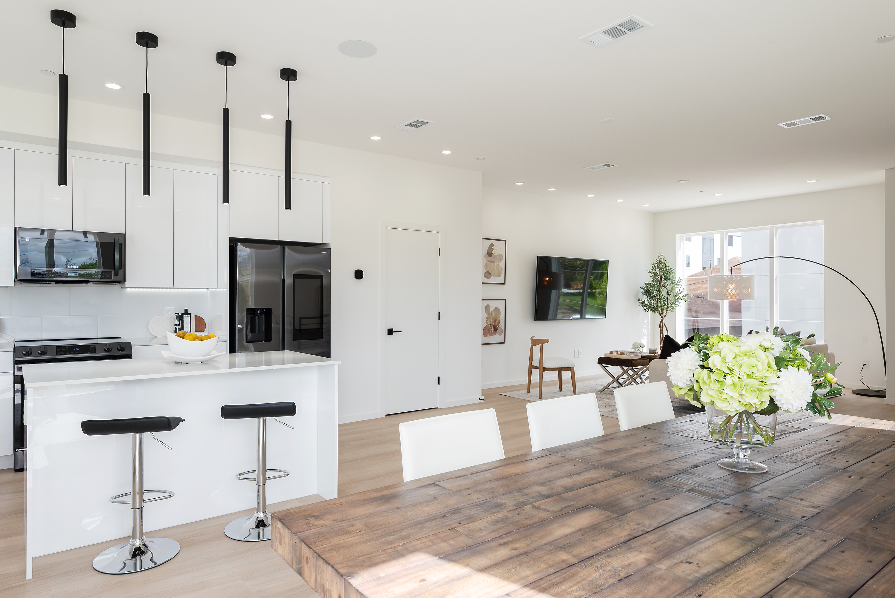 Bright elegant living spaces with high end modern kitchen